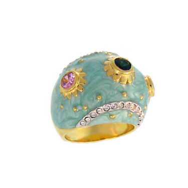 Part of the Poppy Love collection, this cocktail ring is crafted of a solid brass base and plated with 18k gold. It features finely hand painted enamel and cubic zirconia accents for a classic look.